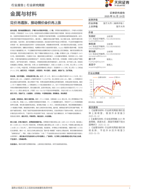 【天风证券】【20250119】金属与材料行业研究周报:定价再通胀,推动铜价金价再上涨-15页