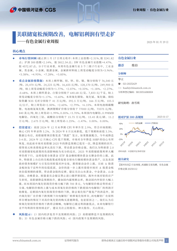 【银河证券】【20250119】20250119-中国银河-有色金属行业周报:美联储宽松预期改善,电解铝利润有望走扩-20页