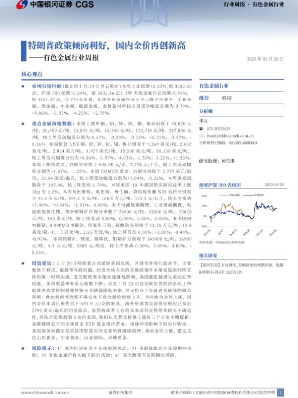 【银河证券】【20250126】20250126-中国银河-有色金属行业周报:特朗普政策倾向利好,国内金价再创新高-20页