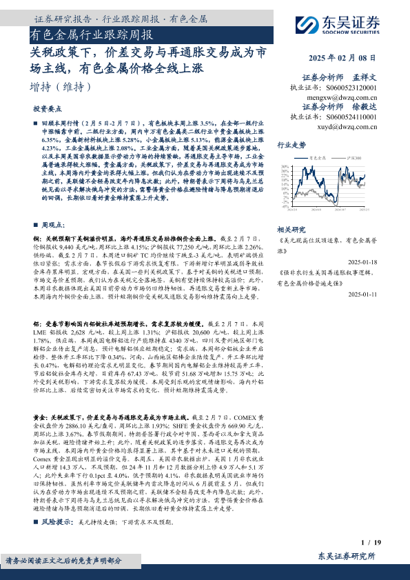 【东吴证券】【20250208】20250208-东吴证券-有色金属行业跟踪周报:关税政策下,价差交易与再通胀交易成为市场主线,有色金属价格全线上涨-19页