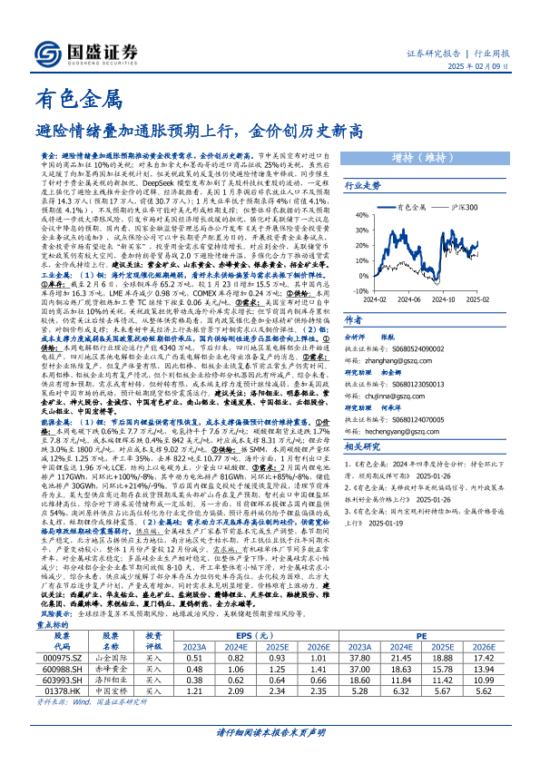 【国盛证券】【20250209】有色金属行业周报:避险情绪叠加通胀预期上行,金价创历史新高-29页