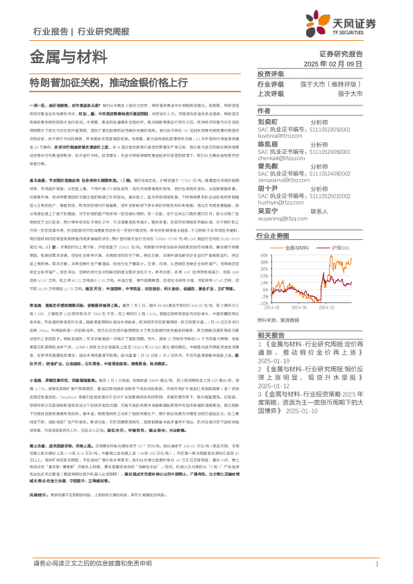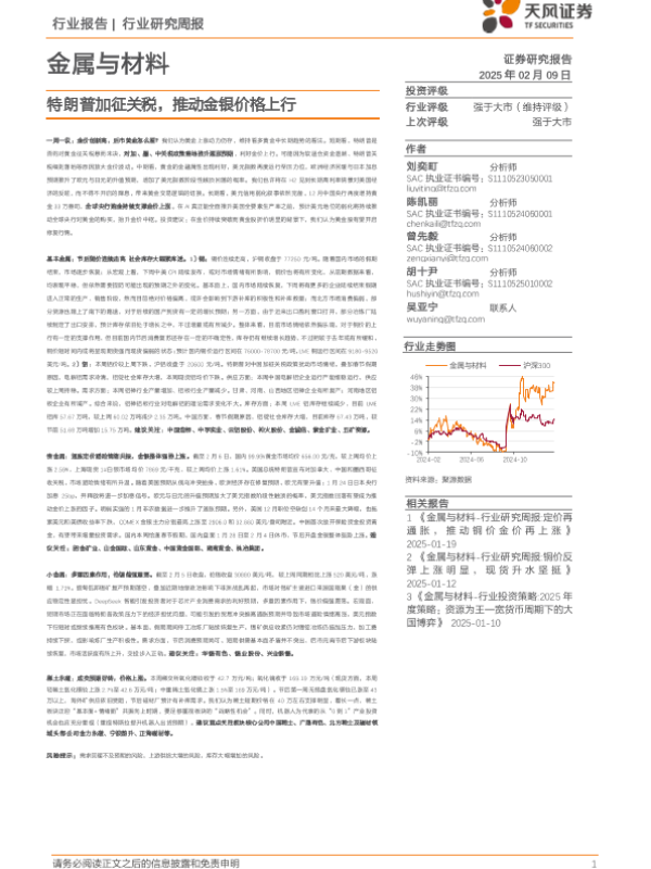 【天风证券】【20250209】金属与材料行业研究周报:特朗普加征关税,推动金银价格上行-15页