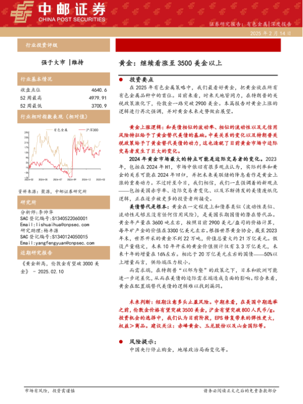 【中邮证券】【20250214】黄金:继续看涨至3500美金以上-12页