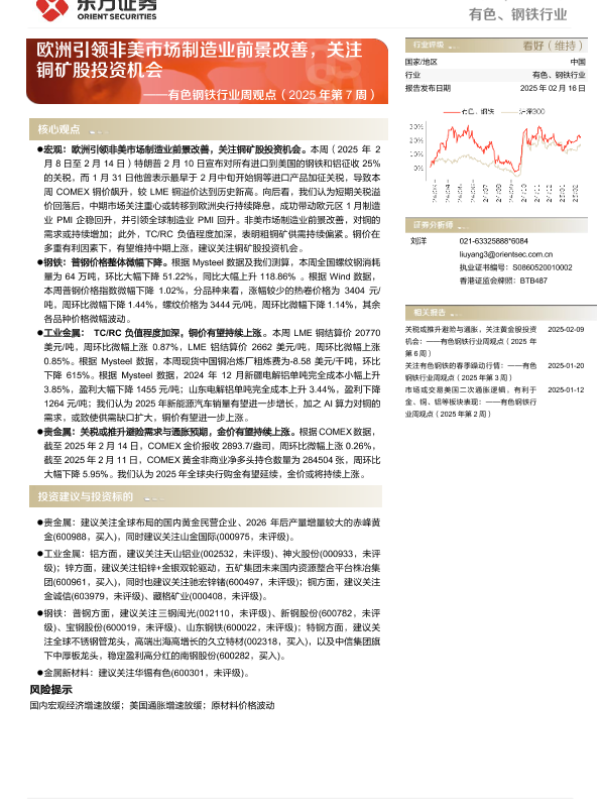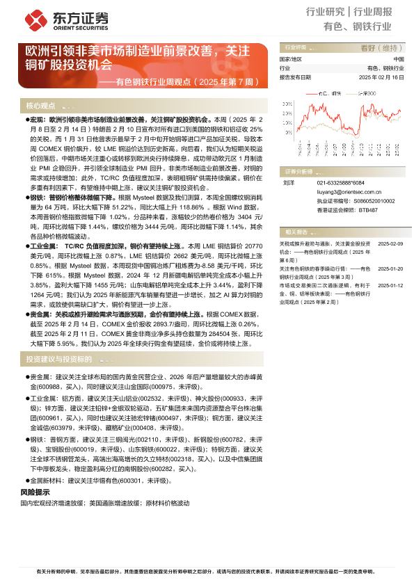 【东方证券】【20250216】20250216-东方证券-有色钢铁行业周观点(2025年第7周):欧洲引领非美市场制造业前景改善,关注铜矿股投资机会-26页