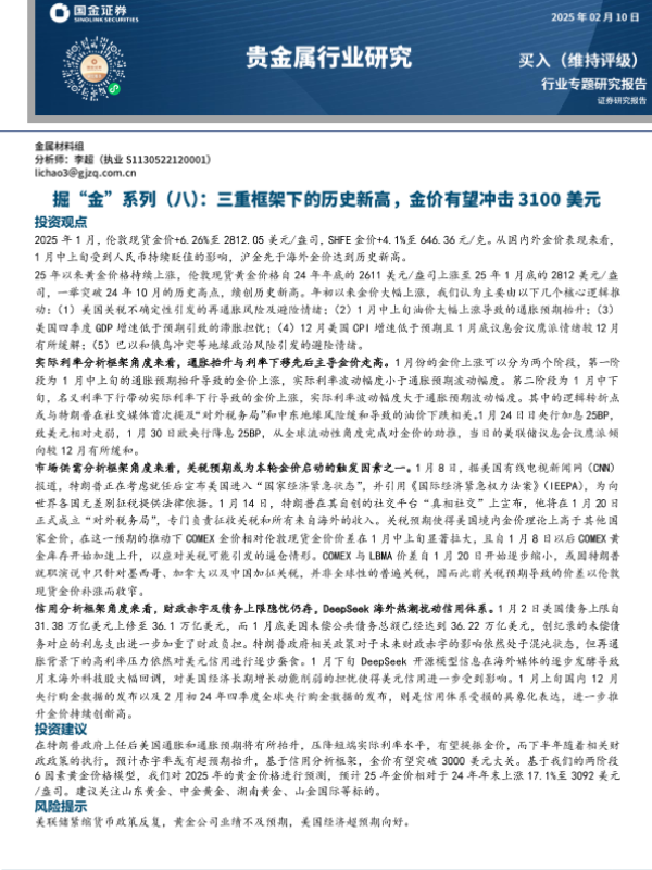 【国金证券】【20250210】掘“金”系列(八):三重框架下的历史新高,金价有望冲击3100美元-28页