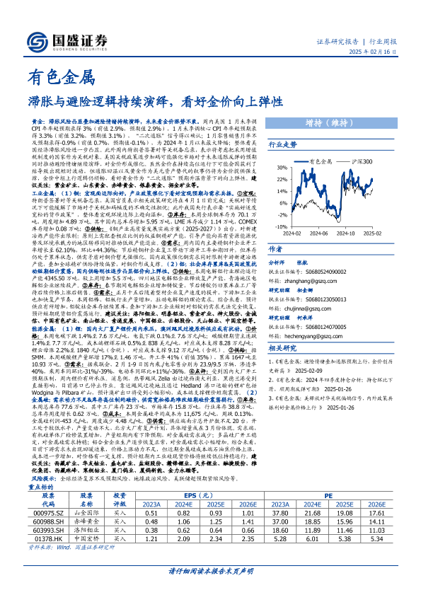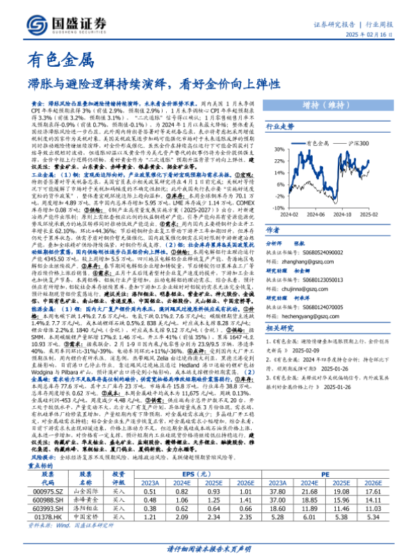 【国盛证券】【20250216】20250216-国盛证券-有色金属行业周报:滞胀与避险逻辑持续演绎,看好金价向上弹性-28页