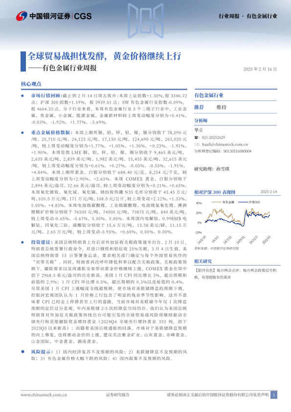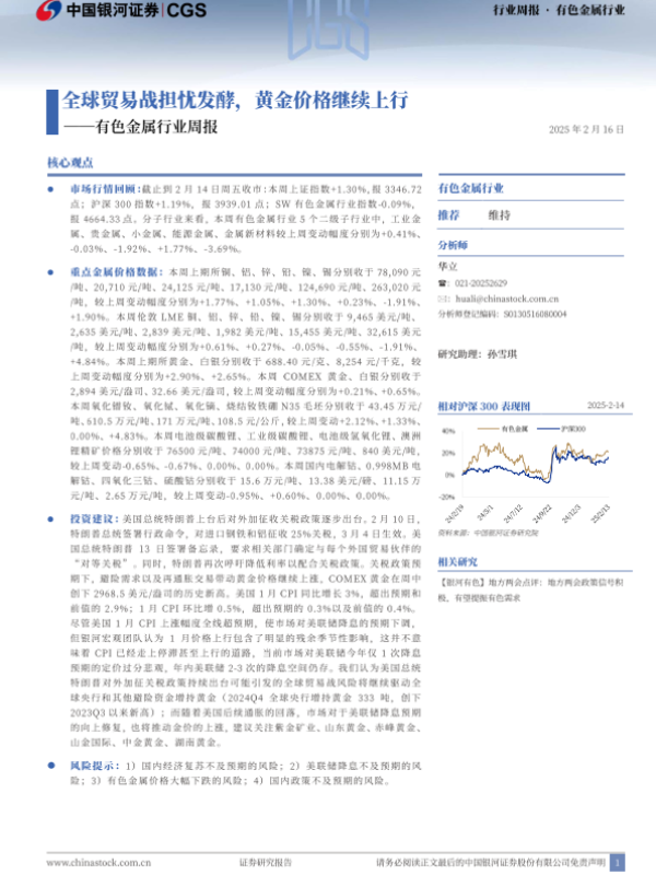 【银河证券】【20250216】20250216-中国银河-有色金属行业周报:全球贸易战担忧发酵,黄金价格继续上行-20页