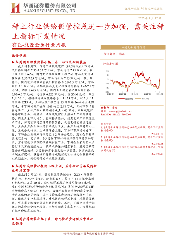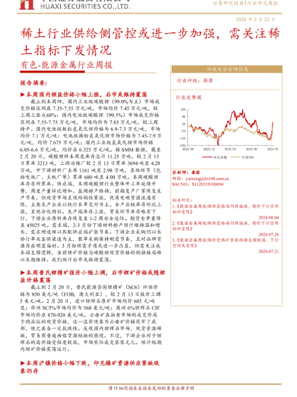 【华西证券】【20250222】20250222-华西证券-有色-能源金属行业周报:稀土行业供给侧管控或进一步加强,需关注稀土指标下发情况-22页