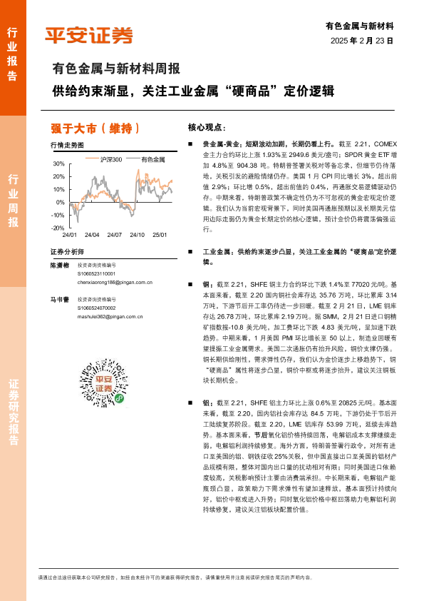 【平安证券】【20250223】20250223-平安证券-有色金属与新材料周报:供给约束渐显,关注工业金属“硬商品”定价逻辑-12页