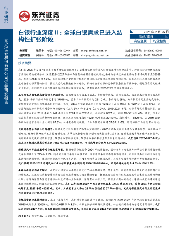 【东兴证券】【20250225】白银行业深度Ⅱ:全球白银需求已进入结构性扩张阶段-18页
