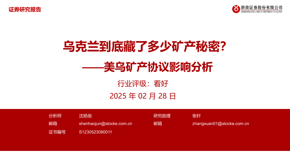 【浙商证券】【20250228】美乌矿产协议影响分析:乌克兰到底藏了多少矿产秘密?-11页