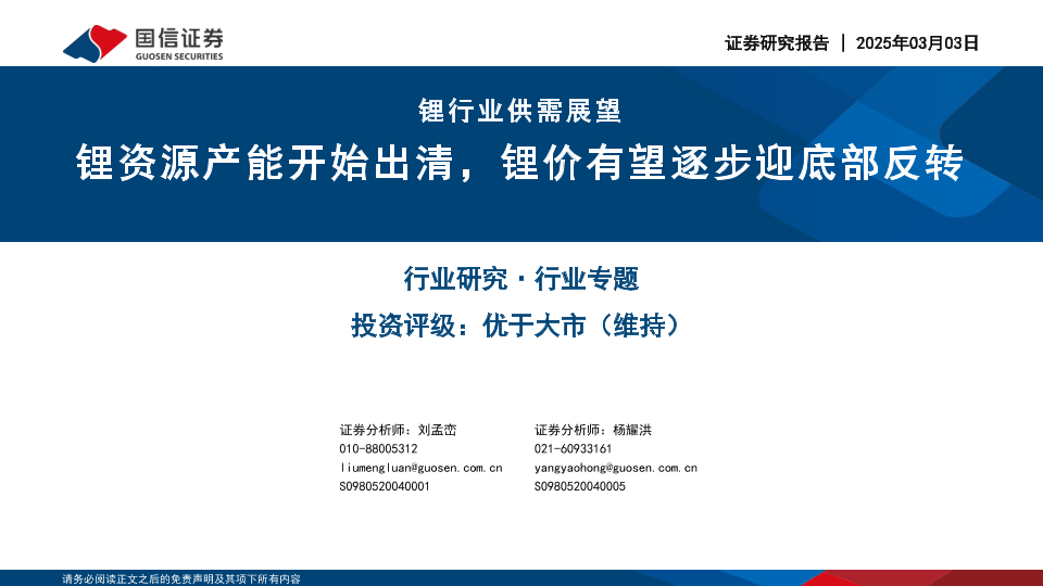 【国信证券】【20250303】锂行业供需展望:锂资源产能开始出清,锂价有望逐步迎底部反转-33页
