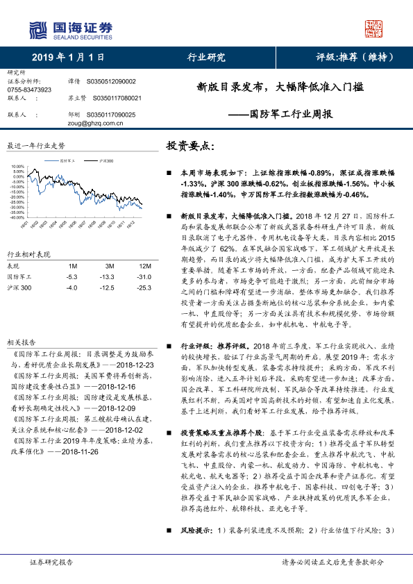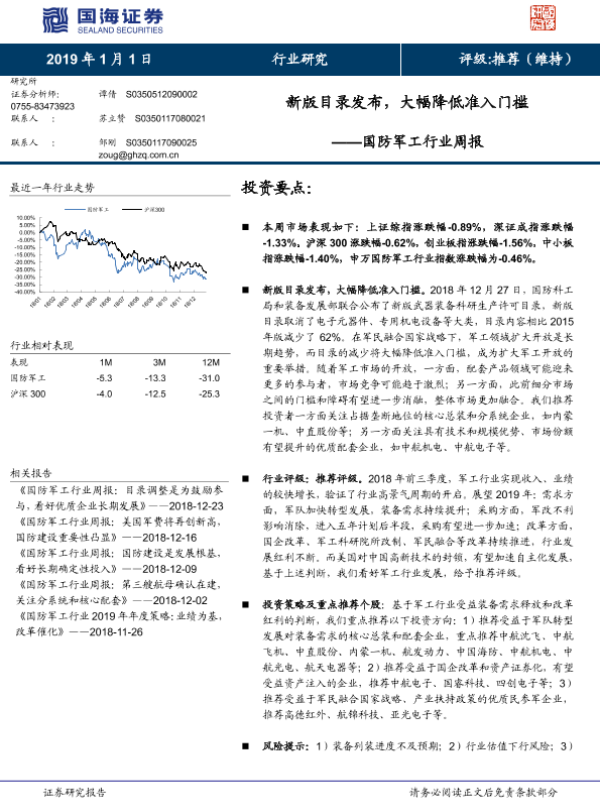 【国海证券】【20190101】20190101-国海证券-国防军工行业周报:新版目录发布,大幅降低准入门槛-14页