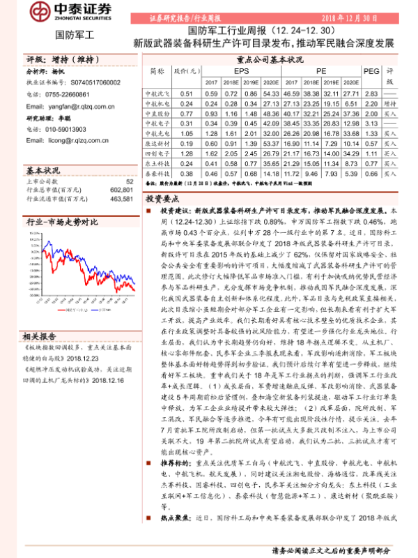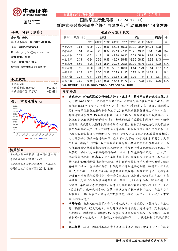 【中泰证券】【20181230】20181230-中泰证券-国防军工行业周报:新版武器装备科研生产许可目录发布,推动军民融合深度发展-14页