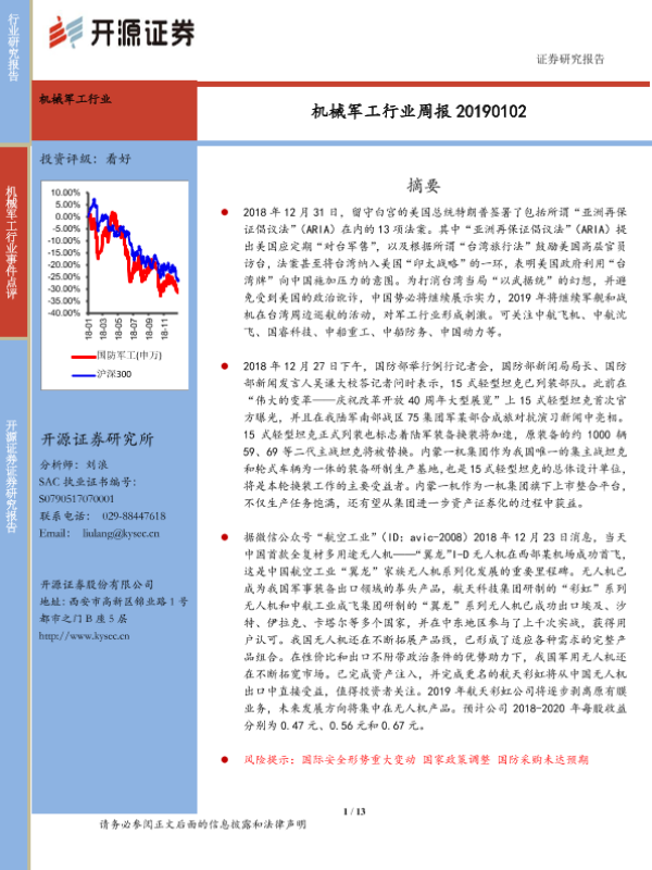 【开源证券】【20190102】机械军工行业周报-13页