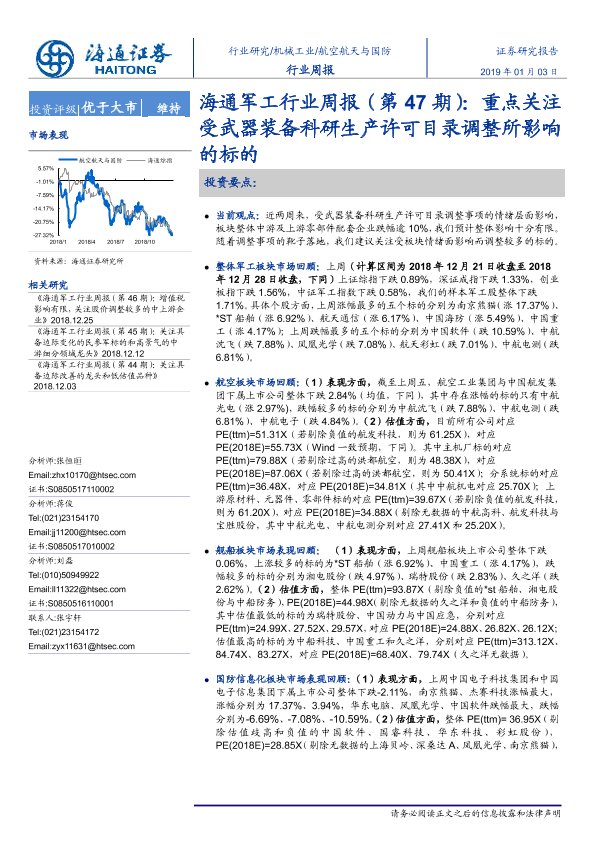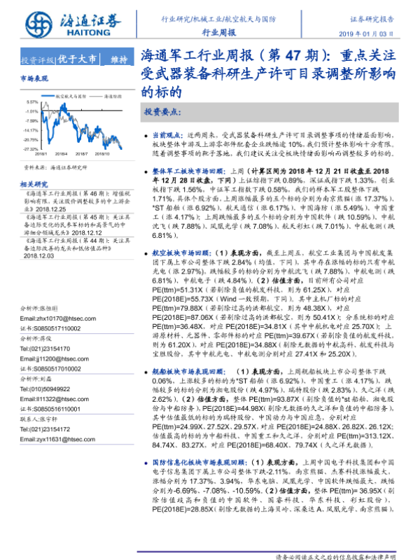 【海通证券】【20190103】军工行业周报(第47期):重点关注受武器装备科研生产许可目录调整所影响的标的-3页