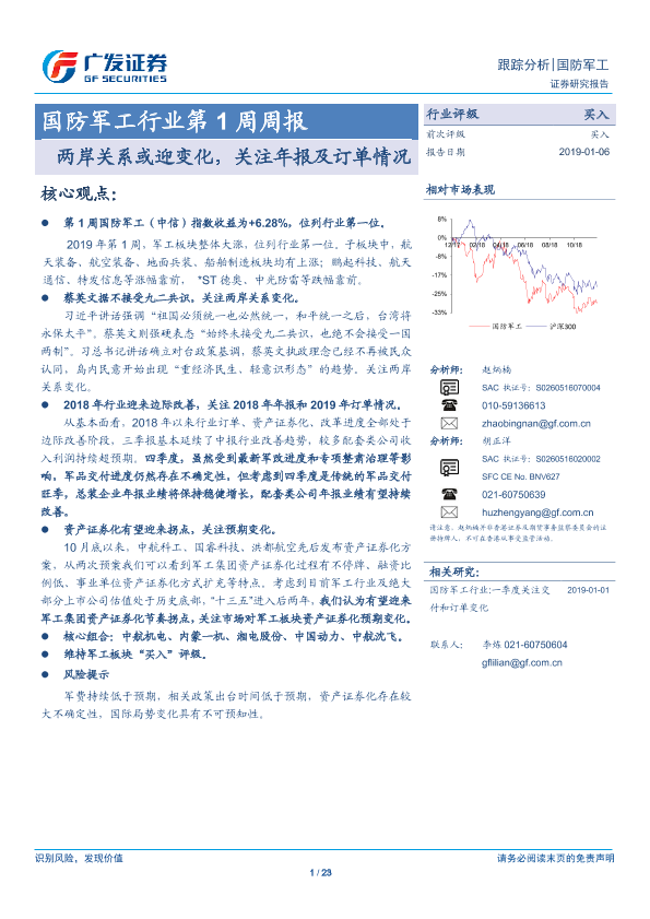 【广发证券】【20190106】国防军工行业第1周周报:两岸关系或迎变化,关注年报及订单情况-23页