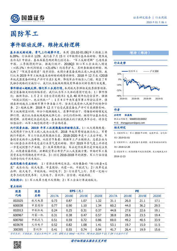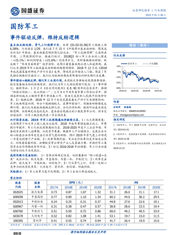 【国盛证券】【20190106】国防军工行业周报:事件驱动反弹,维持反转逻辑-16页