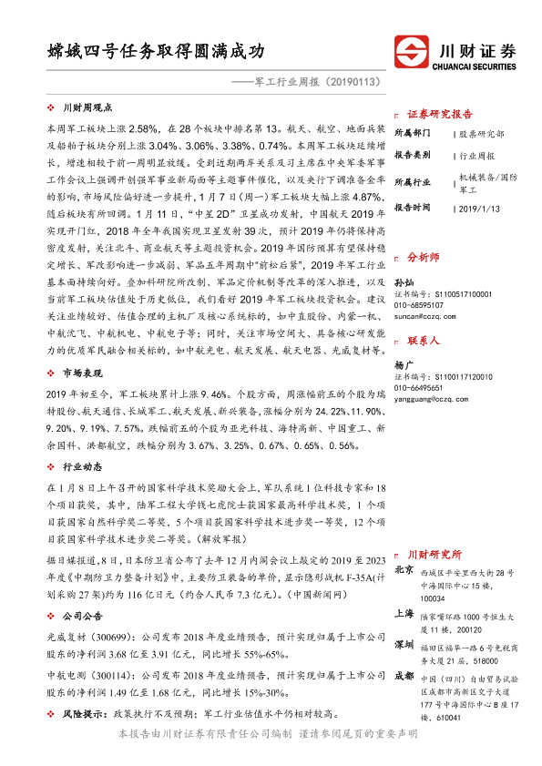 【川财证券】【20190113】军工行业周报:嫦娥四号任务取得圆满成功-9页