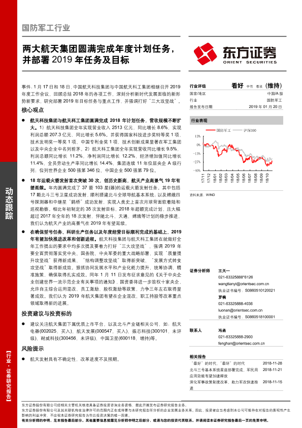 【东方证券】【20190120】国防军工行业:两大航天集团圆满完成年度计划任务,并部署2019年任务及目标-3页
