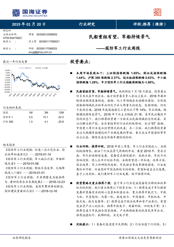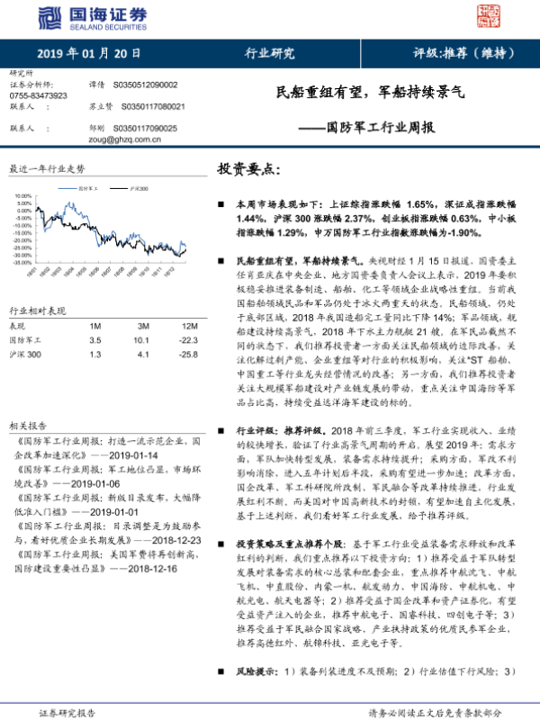 【国海证券】【20190120】国防军工行业周报:民船重组有望,军船持续景气-14页