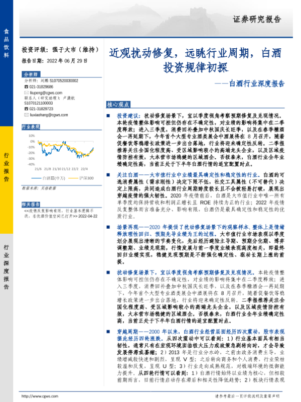 【长城证券】【20220629】白酒行业深度报告:近观扰动修复,远眺行业周期,白酒投资规律初探-34页