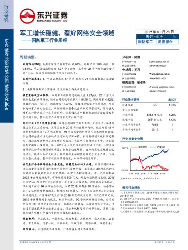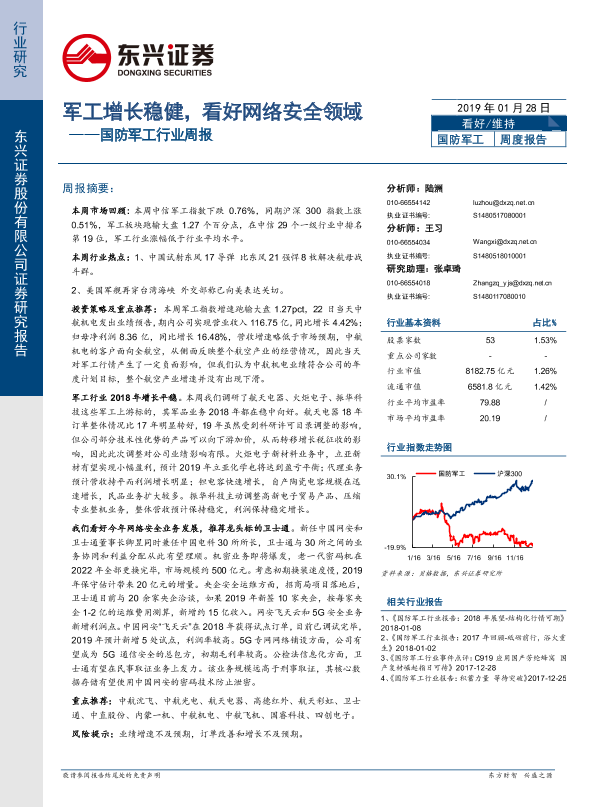【东兴证券】【20190128】20190128-东兴证券-国防军工行业周报:军工增长稳健,看好网络安全领域-14页