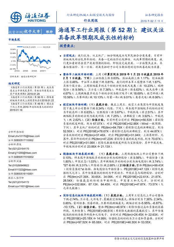 【海通证券】【20190211】海通军工行业周报(第52期):建议关注具备改革预期及成长性的标的-4页