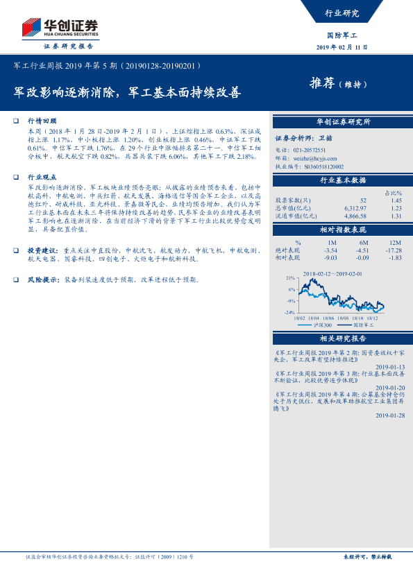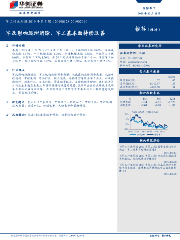 【华创证券】【20190211】军工行业周报2019年第5期:军改影响逐渐消除,军工基本面持续改善-15页