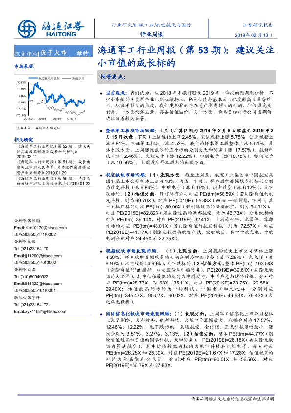 【海通证券】【20190218】海通军工行业周报(第53期):建议关注小市值的成长标的-4页