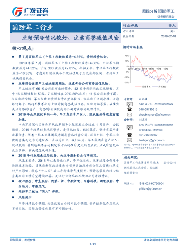 【广发证券】【20190218】国防军工行业:业绩预告情况较好,注意商誉减值风险-21页