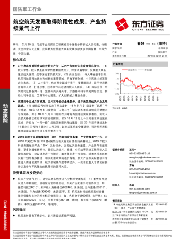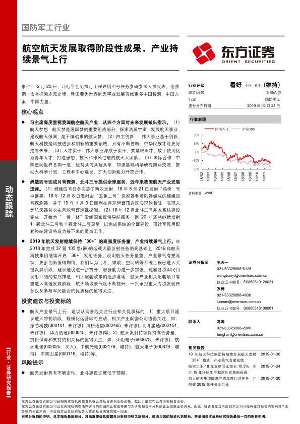 【东方证券】【20190224】国防军工行业:航空航天发展取得阶段性成果,产业持续景气上行-3页