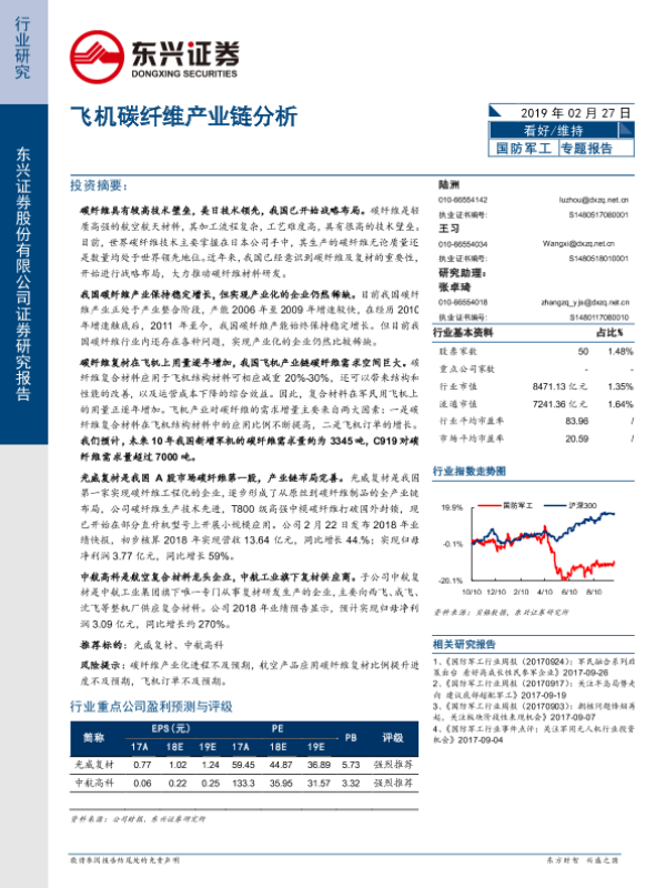 【东兴证券】【20190227】国防军工专题报告:飞机碳纤维产业链分析-24页