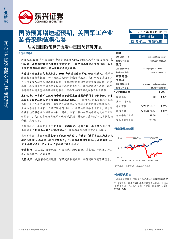 【东兴证券】【20190305】从美国国防预算开支看中国国防预算开支:国防预算增速超预期,美国军工产业装备采购值得借鉴-13页