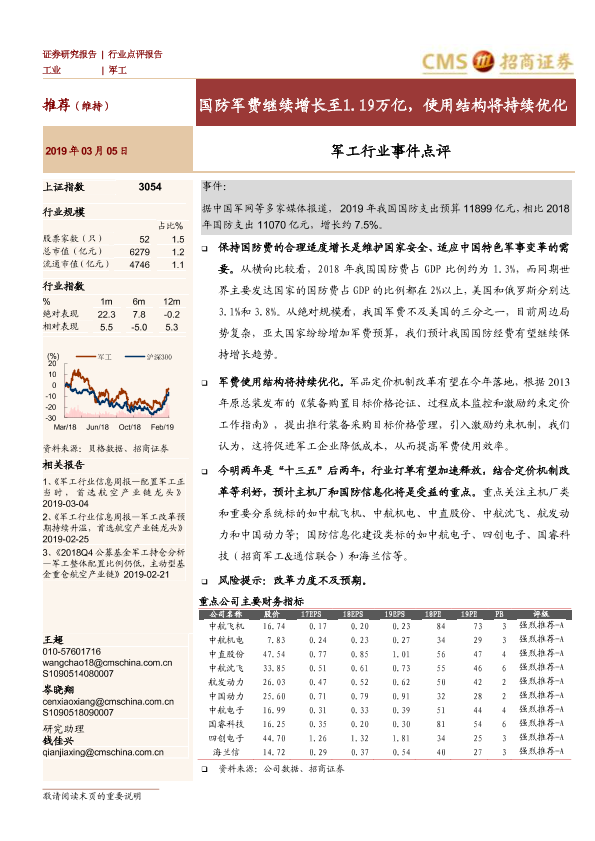 【海通证券】【20190305】军工行业事件点评:国防军费继续增长至1.19万亿,使用结构将持续优化-3页