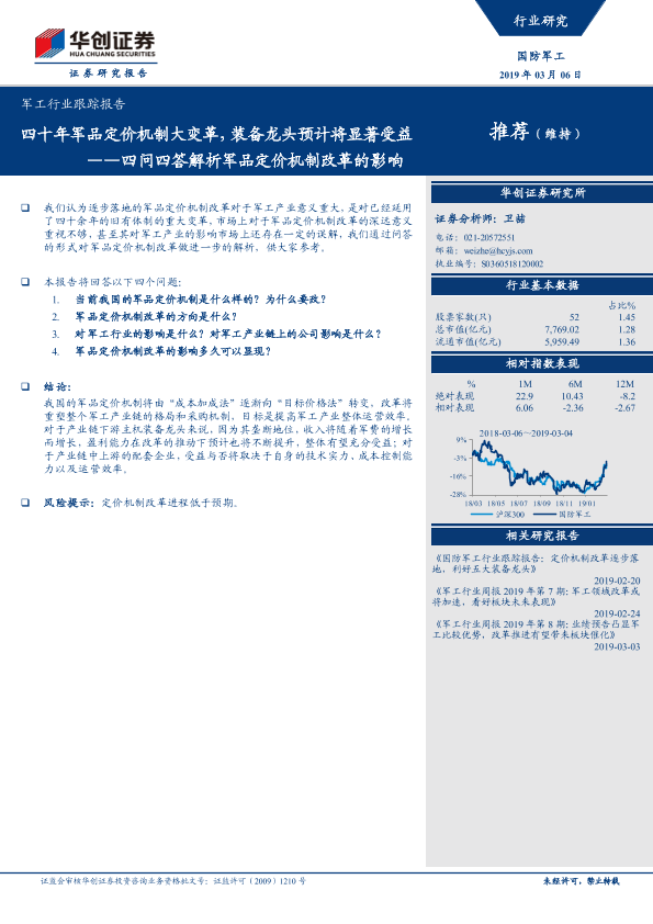 【华创证券】【20190306】军工行业跟踪报告:四问四答解析军品定价机制改革的影响-8页