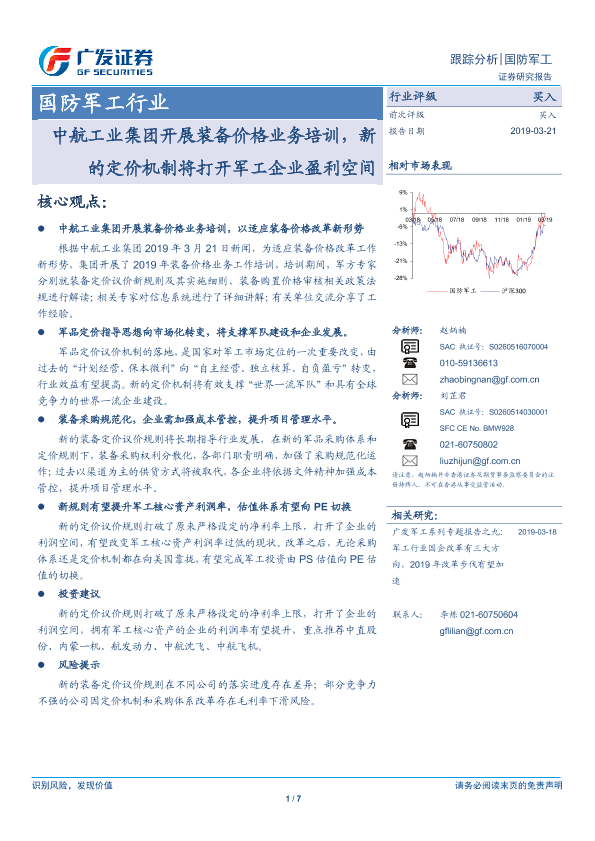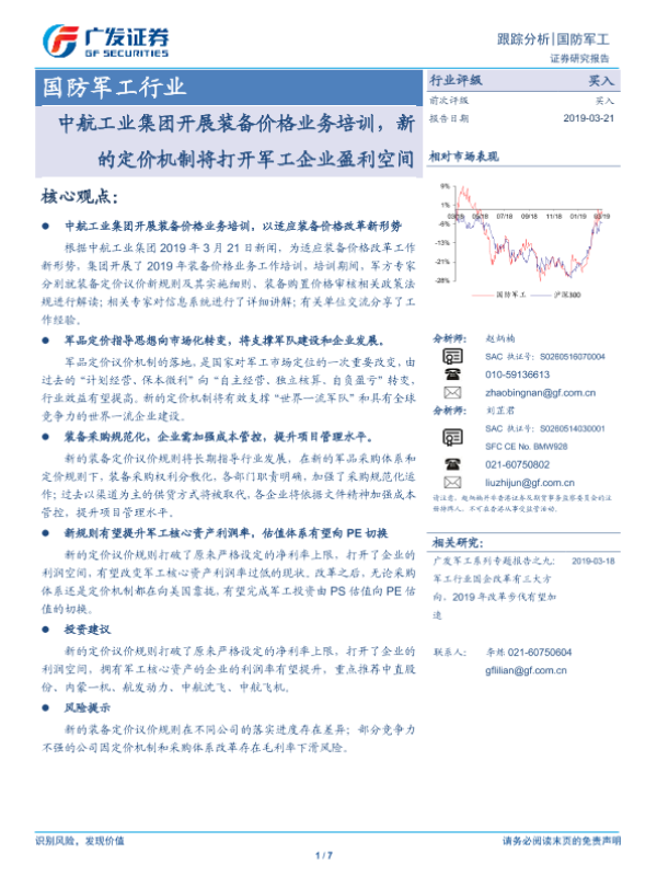 【广发证券】【20190321】中航工业集团开展装备价格业务培训,新的定价机制将打开军工企业盈利空间-7页