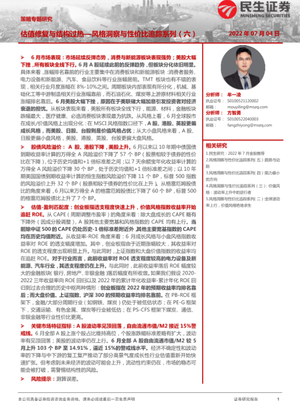【民生证券】【20220704】策略专题研究:风格洞察与性价比追踪系列(六),估值修复与结构过热-20页