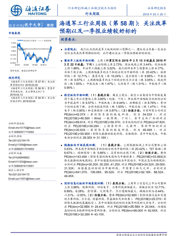【海通证券】【20190325】海通军工行业周报(第58期):关注改革预期以及一季报业绩较好标的-4页