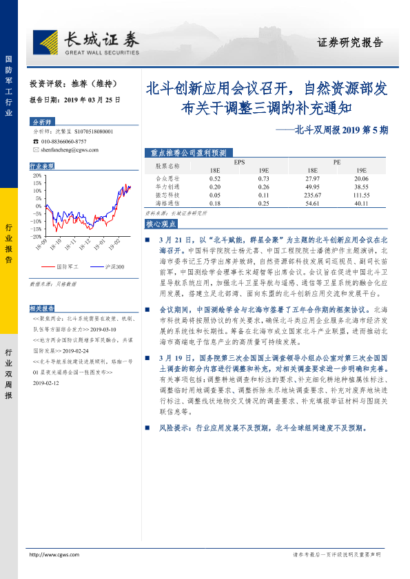 【长城证券】【20190325】20190325-长城证券-国防军工行业:北斗双周报2019第5期-15页