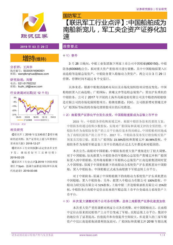 【粤开证券】【20190329】中国船舶成为南船新宠儿,军工央企资产证券化加速-4页
