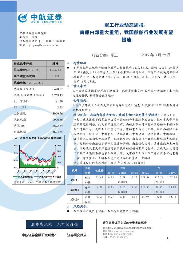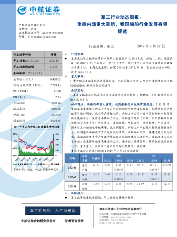 【中航证券】【20190329】20190329-中航证券-军工行业动态周报:南船内部重大重组,我国船舶行业发展有望提速-11页