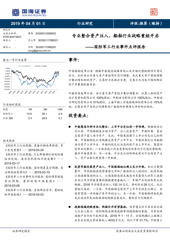 【国海证券】【20190401】国防军工行业事件点评报告:专业整合资产注入,船舶行业战略重组开启-4页