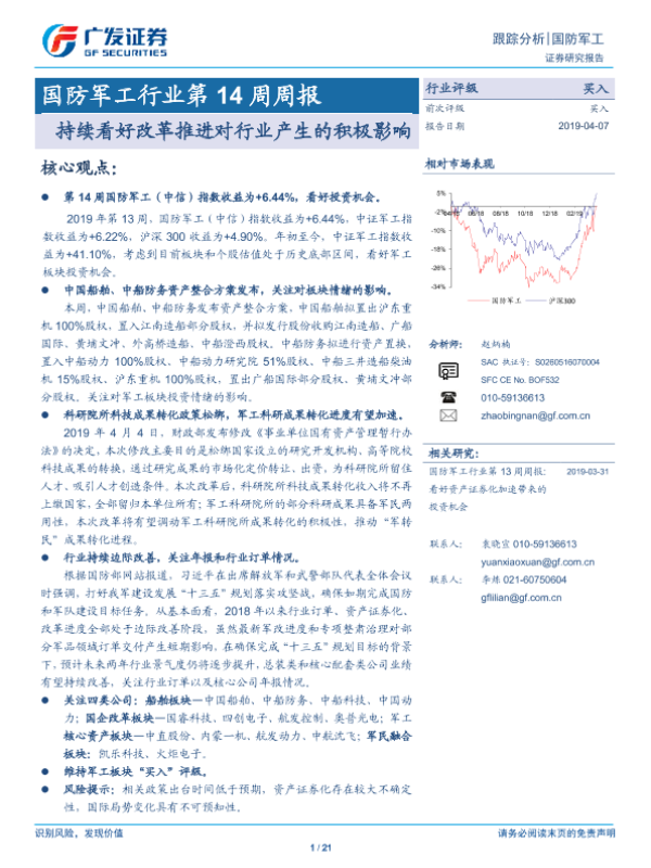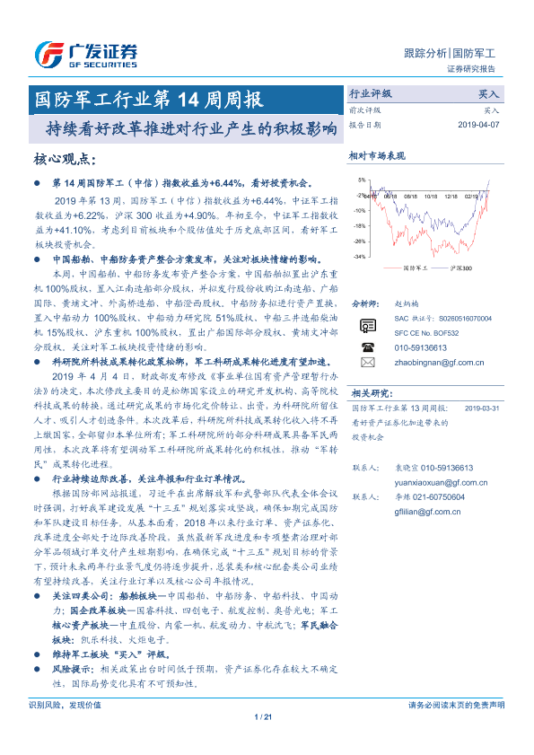 【广发证券】【20190407】国防军工行业第14周周报:持续看好改革推进对行业产生的积极影响-21页