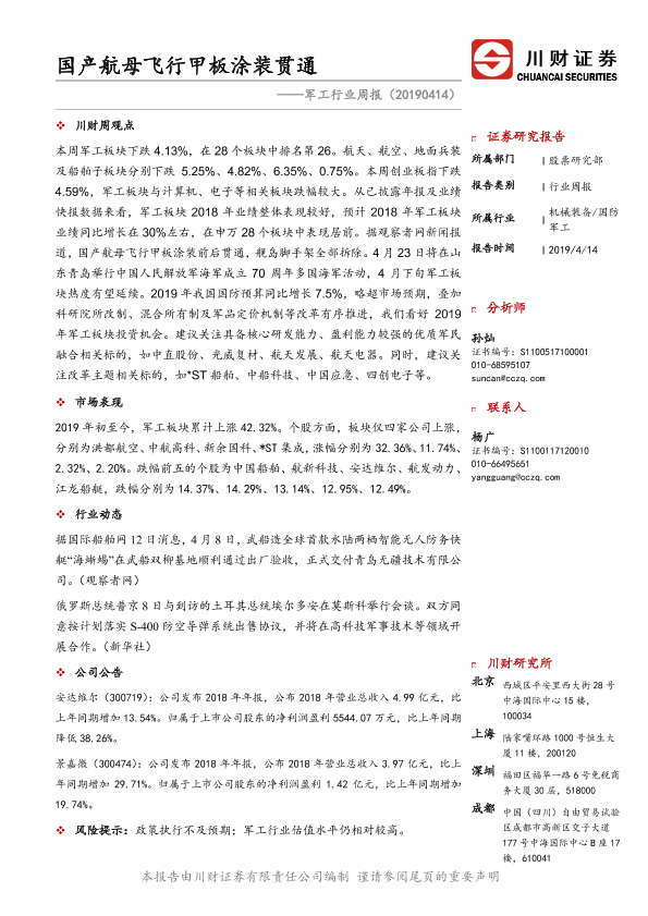 【川财证券】【20190414】军工行业周报:国产航母飞行甲板涂装贯通-10页
