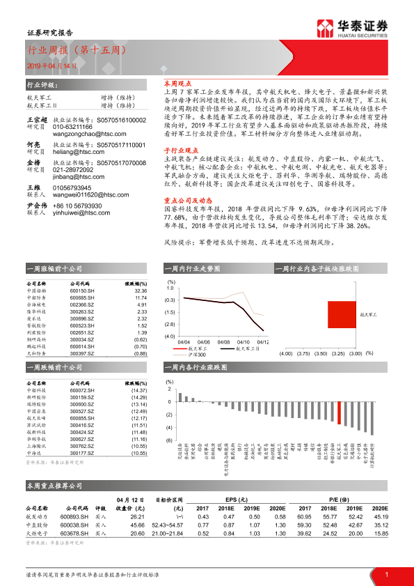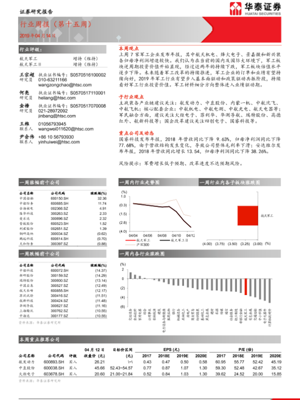 【华泰证券】【20190414】20190414-华泰证券-航天军工行业周报(第十五周)-17页