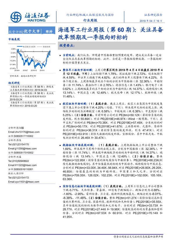 【海通证券】【20190416】海通军工行业周报(第60期):关注具备改革预期及一季报向好标的-4页