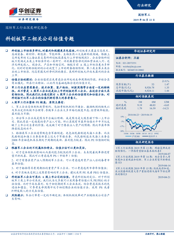 【华创证券】【20190422】国防军工行业深度研究报告:科创板军工相关公司估值专题-18页