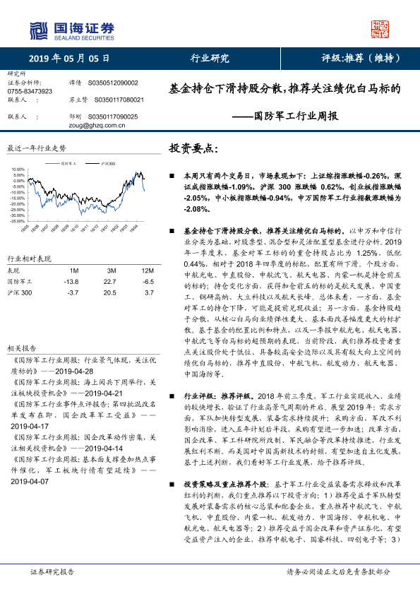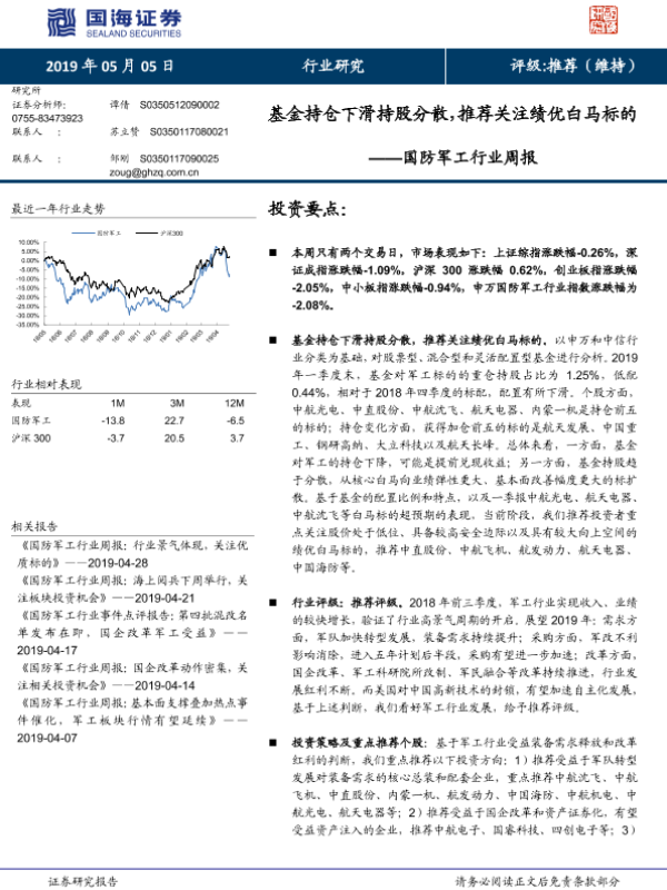 【国海证券】【20190505】国防军工行业周报:基金持仓下滑持股分散,推荐关注绩优白马标的-13页