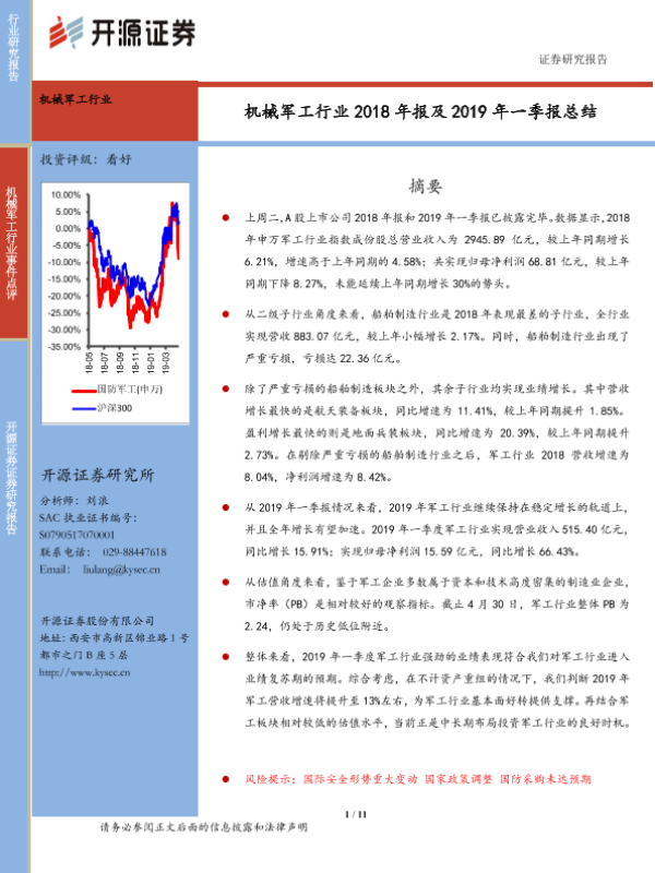 【开源证券】【20190506】机械军工行业2018年报及2019年一季报总结-11页